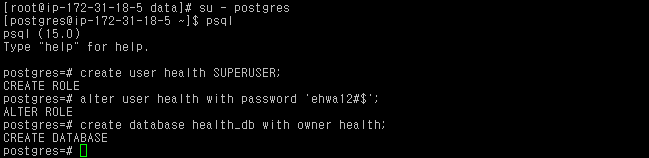 #vim /var/lib/pgsql/data/pg_hba.conf // DB 사용자 추가