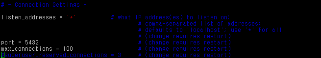 #vi /var/lib/pgsql/data/postgresql.conf